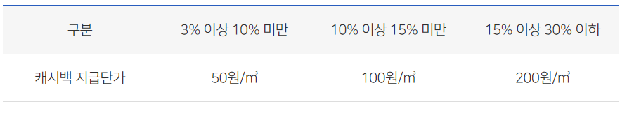 전년도 사용량보다 3% 이상 절약하면 절감량에 따라 현금으로 돌려주는 제도입니다.