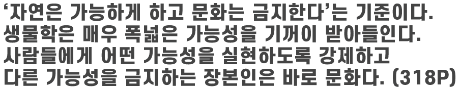 문화가 그저 사람들이 사는 방식이라고 가볍게 생각했나 봐요. 금지하는 것이 문화라고 했을 때 어? 그러고 보니 그렇네? 싶었어요. 식사만 봐도 그렇습니다. 어른이 먼저 숟가락을 드는 나라도 있고 어린아이들이 먼저 숟가락을 드는 나라도 있잖아요. 사실 생물학적 관점에서 보면 숟가락을 누가 먼저 들던 별 상관이 없잖아요.