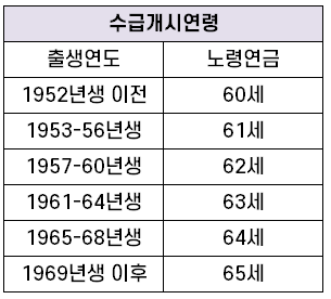 표에서 본인에게 해당하는 출생연도와 수급개시연령 확인하시면 됩니다.