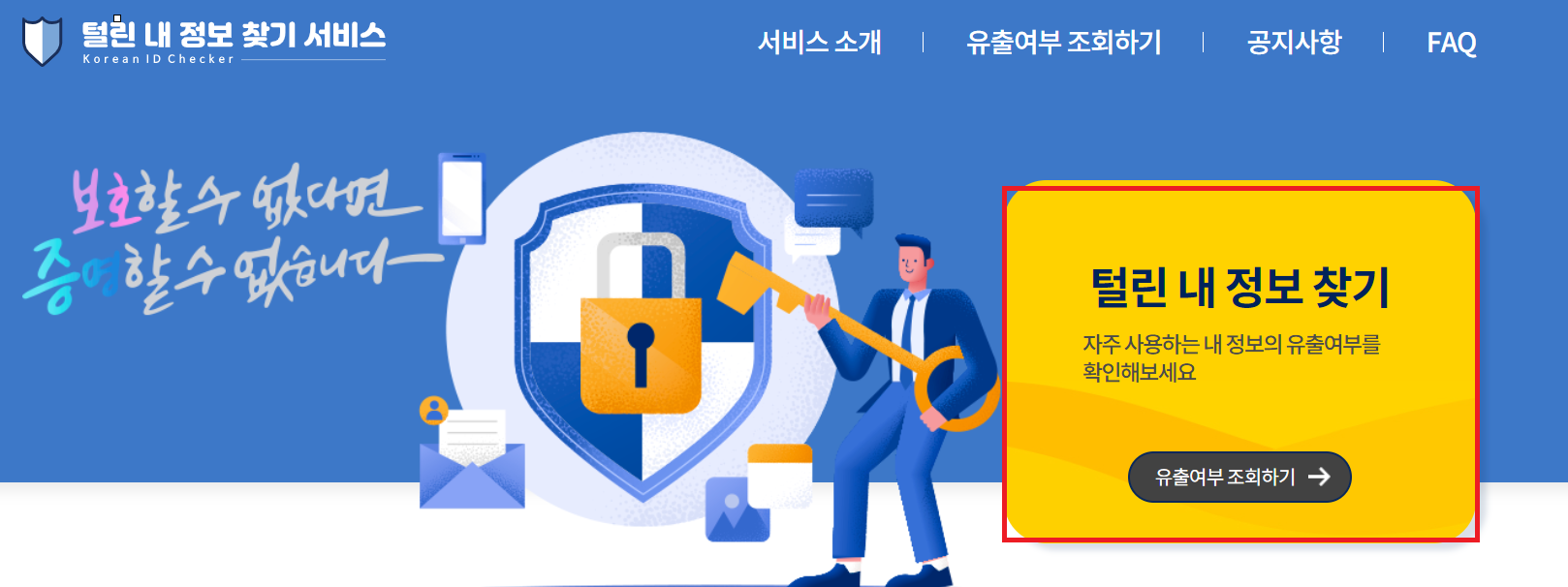 개인정보 유출 여부를 확인해 주는 서비스를 제공하고 있습니다.