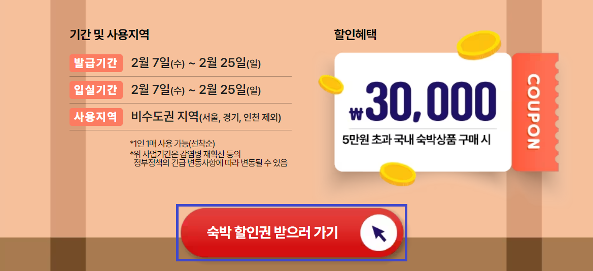 1차, 2차 두 번에 나누어 숙박쿠폰을 배포한다고 합니다.