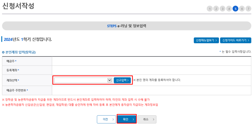 국가 장학금 신청 전에 본인 명의 전자서명수단(공동/금융/민간인증서) 및 계좌번호,