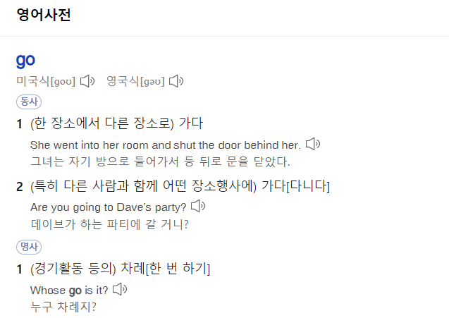 일단 Go와 Come이 사전에 어떻게 나오는지 먼저 봅시다.