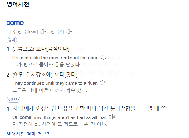 우리가 알고 있던 것처럼 Go는 가다로 되어있네요. 자, 그럼 Come도 봅시다.